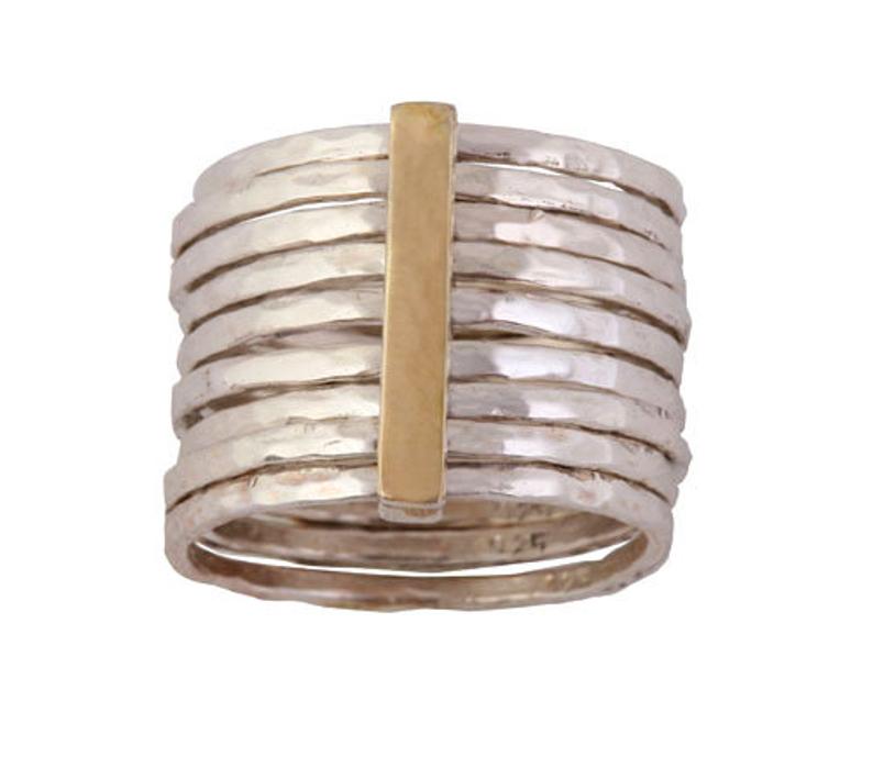 9 Håndlavede Sølv Ringe med Guldbelagt Skinne er essentielle for enhver smykkesamling. Disse ringe er lavet af 925 sterlingsølv og prydet med en guldbelagt skinne, der giver et eksklusivt udseende.