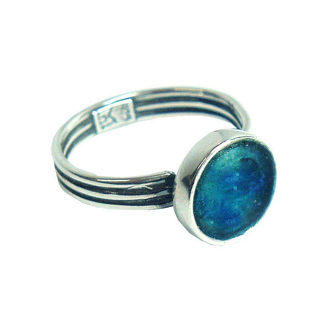 Denne ring er en sjælden perle, der forener moderne design med historisk værdi. Det antikke romerske glas stammer fra en tid for over 2000 år siden, hvilket giver ringen en unik karakter. Ringen er justerbar og passer til enhver fingerstørrelse.