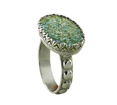 Elegant oval ring med romersk glas i sølvramme er et uundgåeligt tilføjelse til din smykkesamling