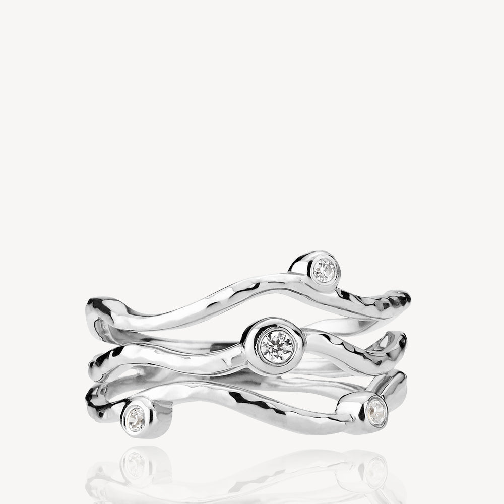 Vera Ringen i sterlingsølv er et must-have til enhver lejlighed. Det unikke tredelte bølgedesign giver et moderne og stilfuldt udtryk, mens zirkonerne tilfører ekstra glans.