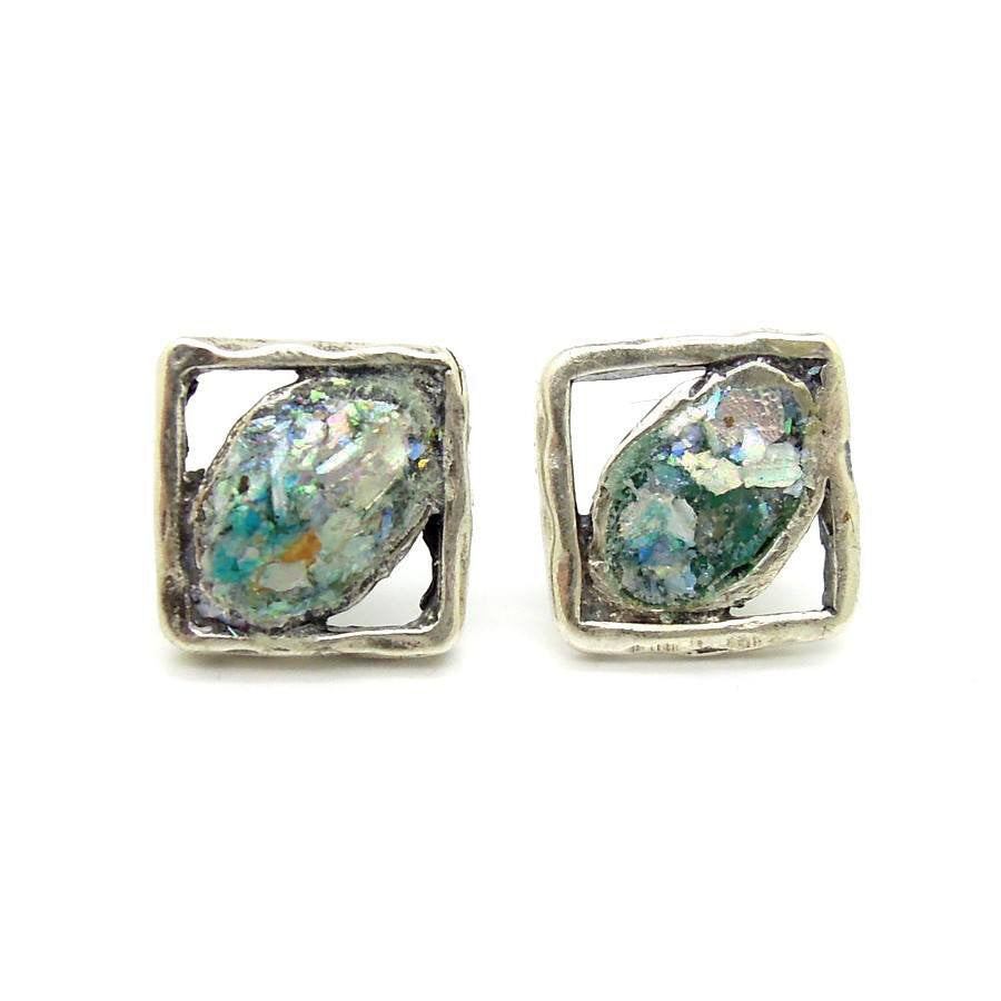 Firkantede sølvørestikkere med romersk glas er en fantastisk tilføjelse til din smykkesamling. Fremstillet af 925 sterlingsølv og prydet med antikt romersk glas, har de en unik charme.