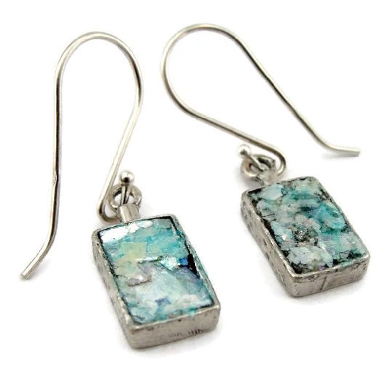 Rektangulære øreringe i 925 sølv med romersk glas – UDGÅR!